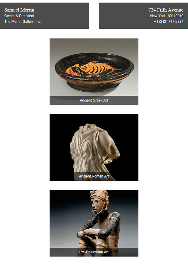 Greek, Etruscan, Roman, Byzantine & Early Christian, Migration to Neo-Classic, Cypriot, Sardinian & Iberian, Egyptian, Near Eastern, and Prehistoric.